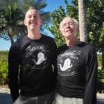 Hand silk screened at Studio Two Three in Richmond, VA. Sizes are unisex, but can be referenced by most standard "men's" sizing. Christopher (Left) is 6'0" and wears the crewneck sweater in size M. John (Right) is 5'11" and wears the longsleeve shirt in size M.